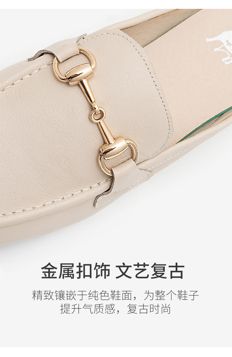 浪莎包頭拖鞋女夏外穿2021春真皮平底半拖鞋粗跟圓頭搭扣穆勒涼拖