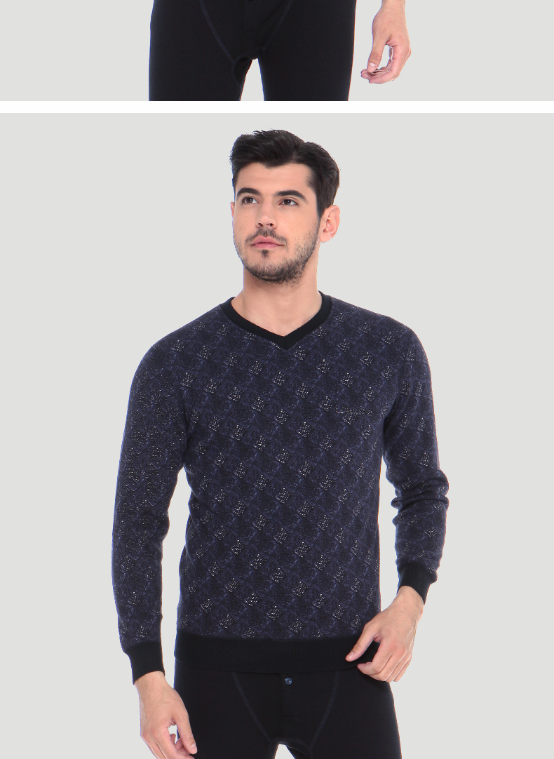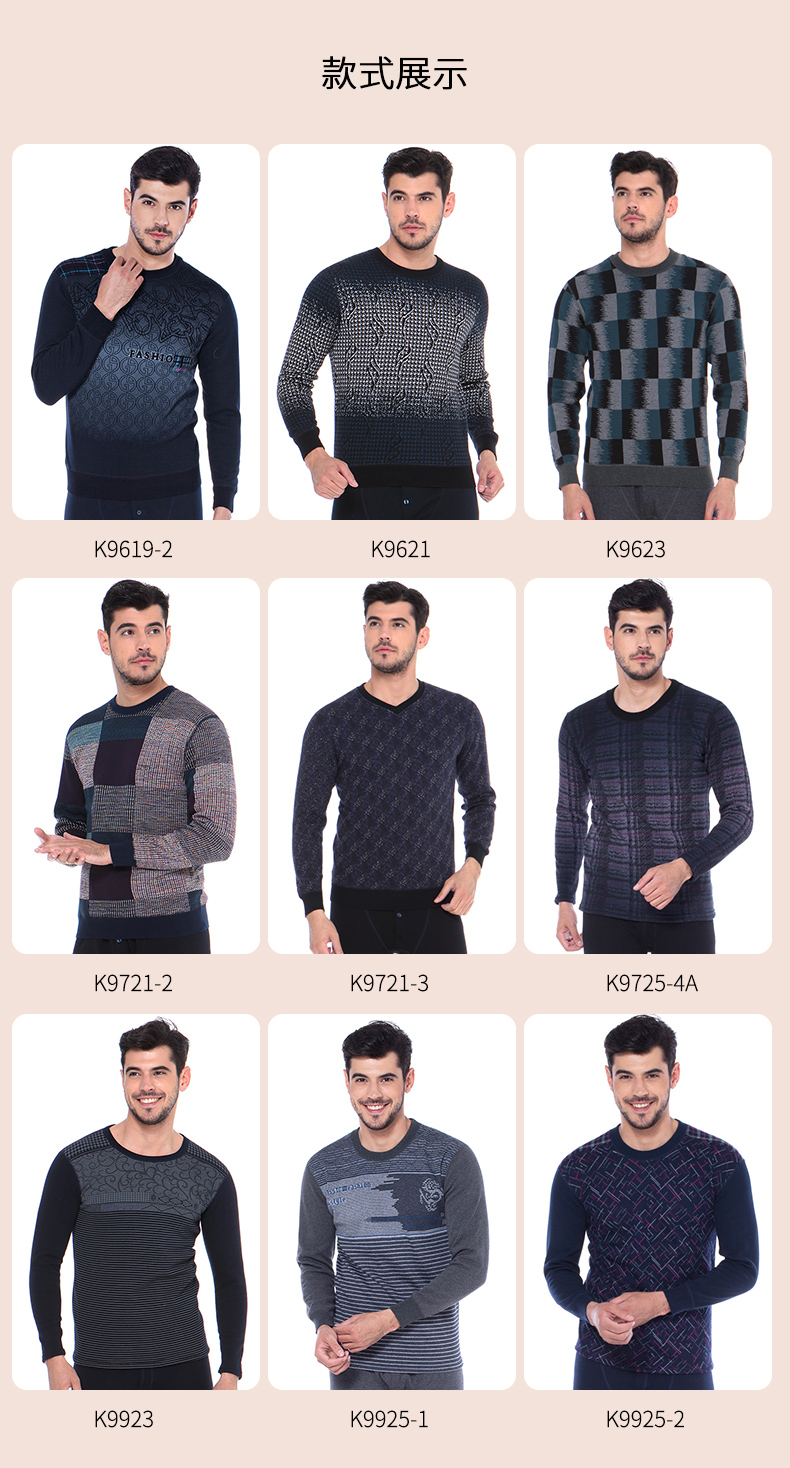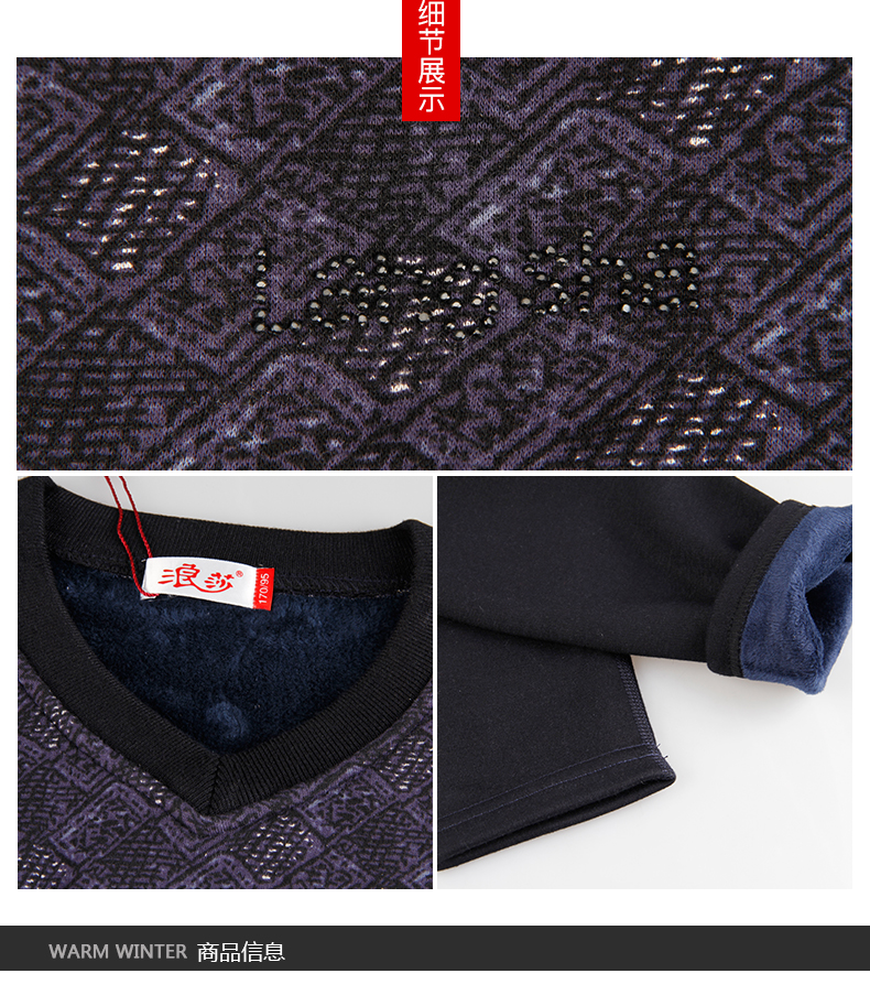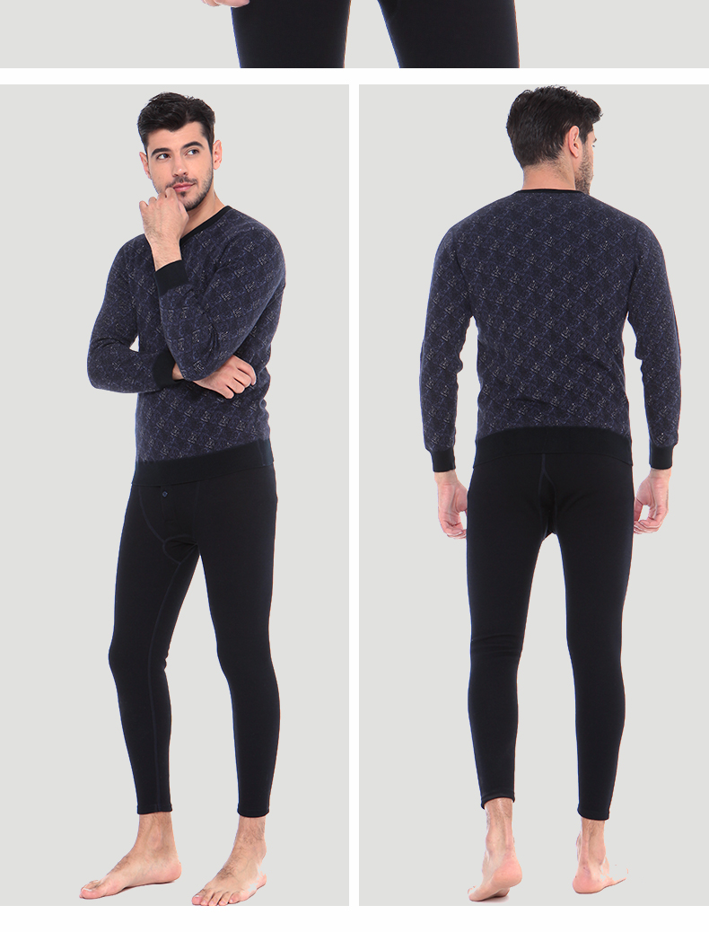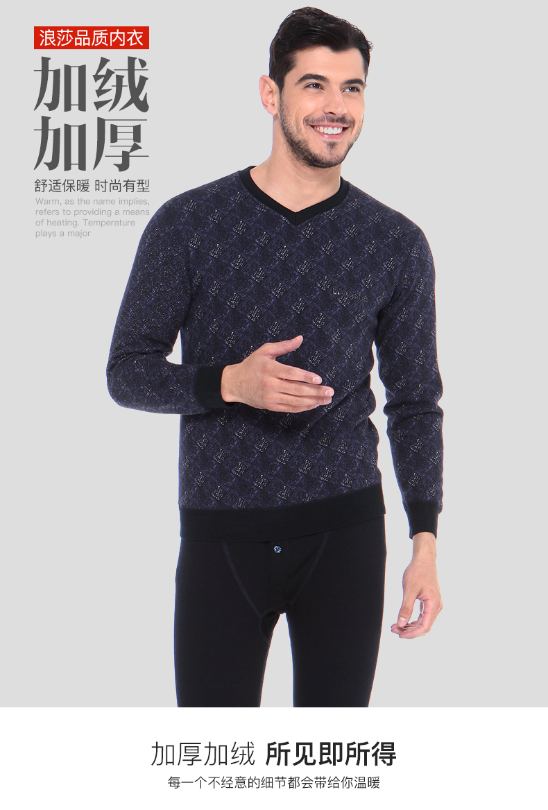 浪莎時尚加絨加厚保暖內(nèi)衣套裝男士中年格子秋衣秋褲冬季打底防寒