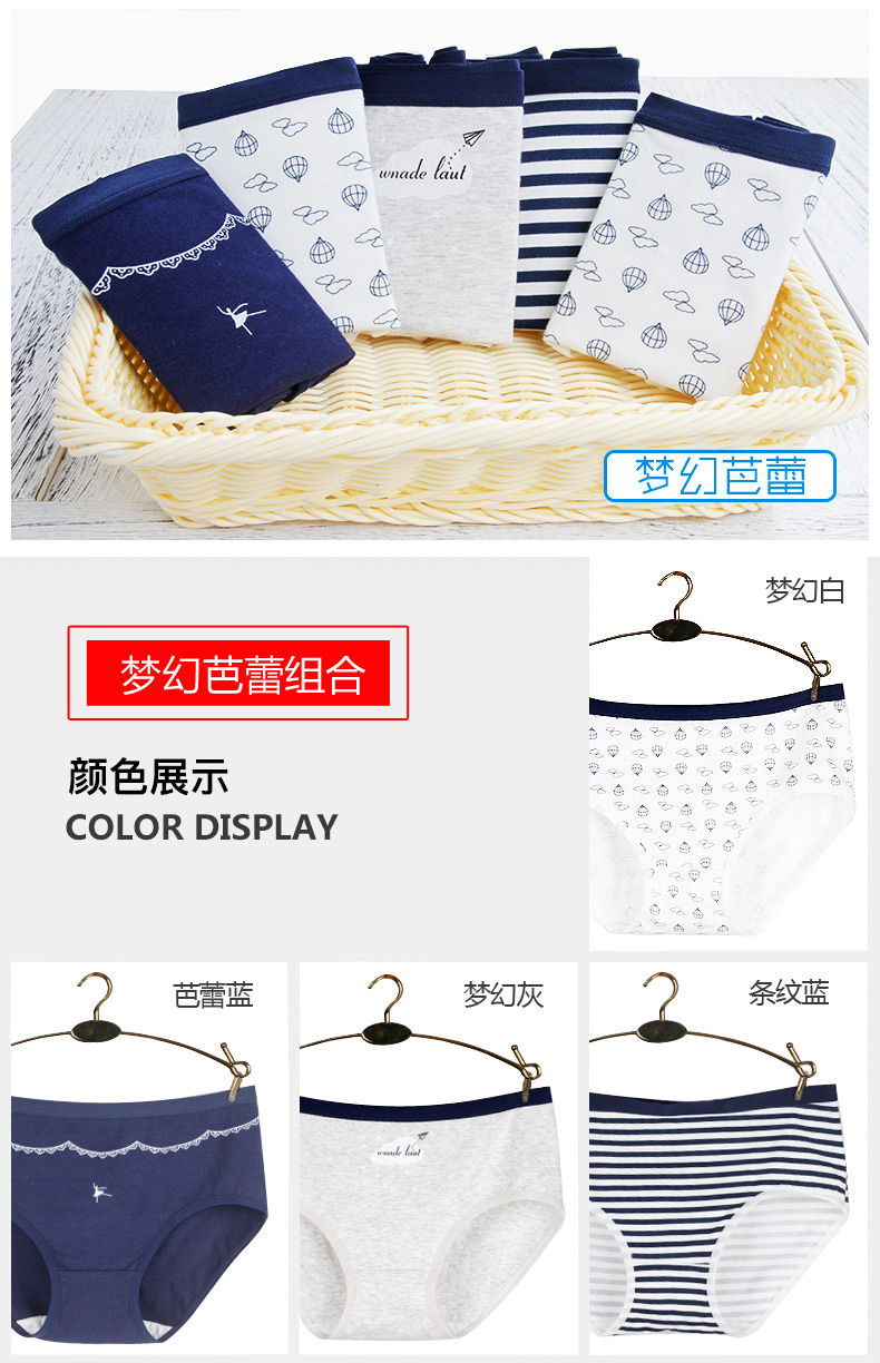 浪莎女士內(nèi)褲女三角褲中腰春夏少女純棉面料透氣全棉日系女生褲衩