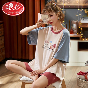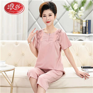 浪莎睡衣女士夏季短袖七分褲莫代爾薄款夏天家居服加大碼中年媽媽