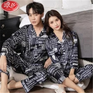 浪莎春夏季新款情侶睡衣韓版長(zhǎng)袖仿真絲時(shí)尚開衫家居服冰絲套裝