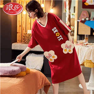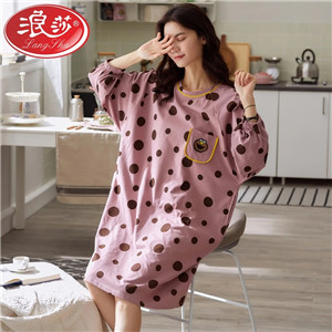 浪莎秋季純棉睡裙韓版可愛清新甜美寬松時(shí)尚睡裙女舒適長(zhǎng)袖可外穿