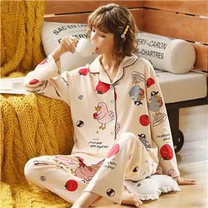 浪莎純棉睡衣女春秋款長(zhǎng)袖開衫可愛少女學(xué)生全棉家居服兩件套裝