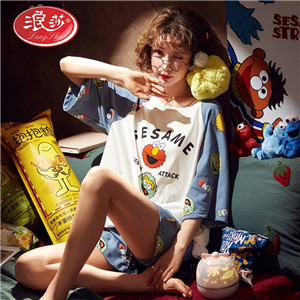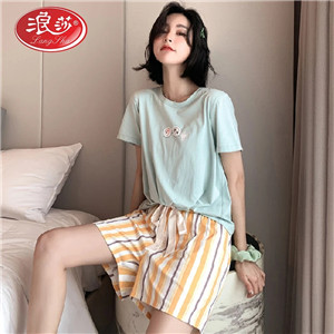 浪莎純棉睡衣女士夏季薄款短袖短褲可愛日系兩件套裝可外穿家居服
